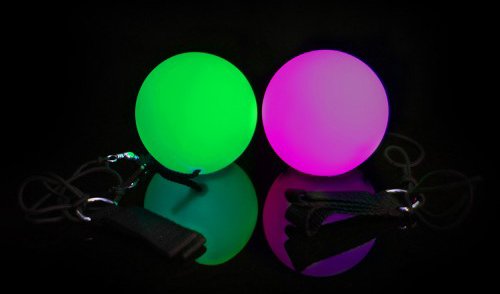 These Poi have a handy rechargeable battery included inside the balls, which are recharged using the micro-USB charging cable included. The cable has two Micro USB ends allowing both poi balls to be charged at the same time through one cable! Simply plug into your phone charger, or a USB port on your laptop. Two hours of charging time should yield around 3 hours of glow time! Each ball and cord (nylon with metal swivel) weigh 135g, and are 70mm in diameter. The Poi have 50 bright colour patterns, very impressive! Usability is very simple...just one button manipulates all the colour modes! To power on and off, hold the button down for five seconds. Press the button twice quickly to cycle through the modes, and click once to cycle through the various colours within that mode. Modes include dots, squares, flicker, and fade among many others. Colours include White, Red, Green, Blue, Yellow, Indigo, and Pink. More info on the small leaflet provided. These poi come with a very cool Flames n Games fabric travel bag to store them in. With the drawstring cord, your poi will stay safe on the move. When you're practicing your poi, you can use the bag to keep your phone or keys safe! Visit our Flames N Games Amazon store for the full range of poi and accessories that we stock, as well as the massive range of other skills toys, juggling equipment, fire spinning toys. From Juggling balls, Juggling clubs, Glow poi and YoYos, to FlowerSticks, Kendama, Fire Staffs, Unicycles, Spinning Plates, Hula Hoops, diabolos and MUCH more! 0 |