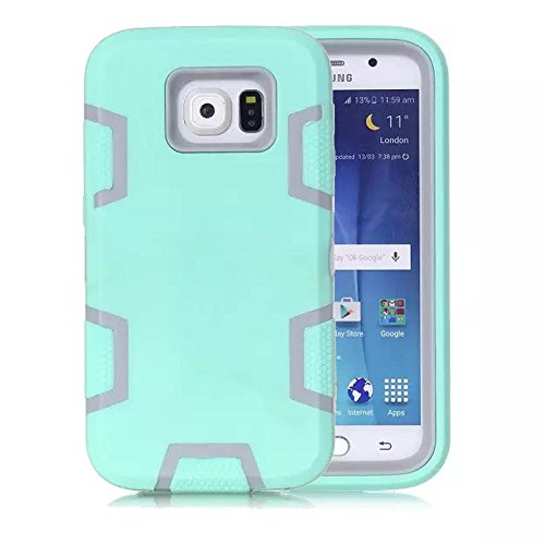Galaxy S6 Case, Firefish 3 in 1 Hybrid Heavy Duty Shockproof Protective Cover Hard PC Rugged Soft Silicone Bumper Dual Layer Case for Samsung Galaxy S6 - Green Gray