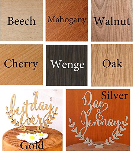 Product Description Wedding cake topper, Mr Mrs cake topper, rustic cake topper, cake toppers for wedding. Our cake toppers are made from real wood. We offer them in beech, cherry, walnut, oak, mahogany, wenge, gold and silver - you can see them all on the last picture. Please note that the gold and silver toppers are made in beech wood and then the front side of the topper is finished in gold or silver. Size: 5' tall x 6' wide. Thank you for visiting our shop and feel free to contact us if you have questions regarding out products. Wedding cake topper, Mr Mrs cake topper, rustic cake topper, cake toppers for wedding. 0