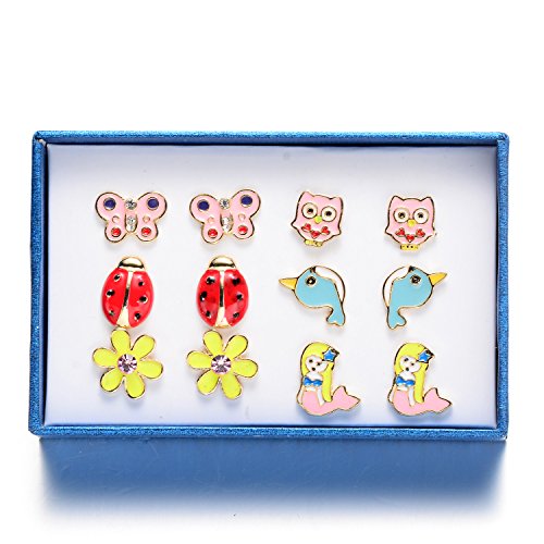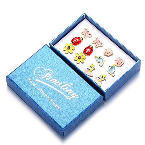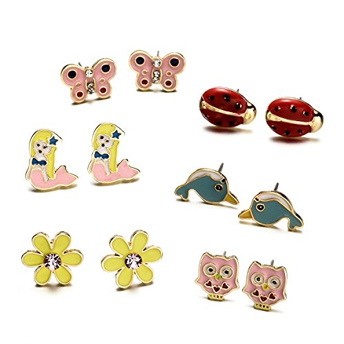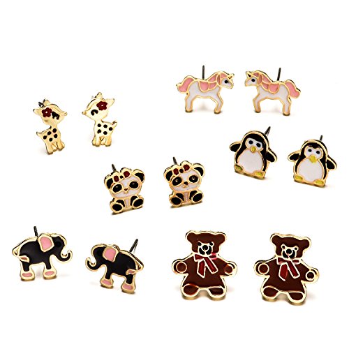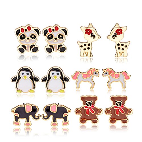 -. Title : 6 Style Enamel Cute Animals Stud Earrings Set For Kids Girls Hypoallergenic Nickel-free