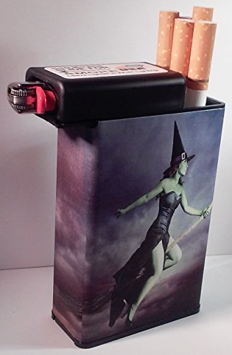 Title : Cigarette Case Witch Flying Broom with built on Lighter holder box Kings 100's ryo