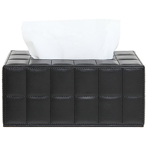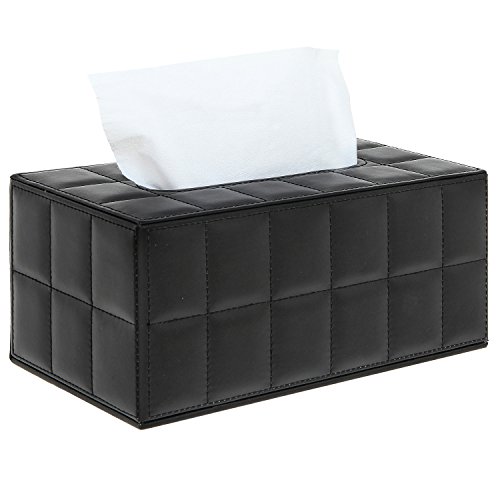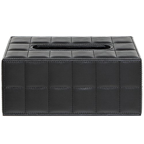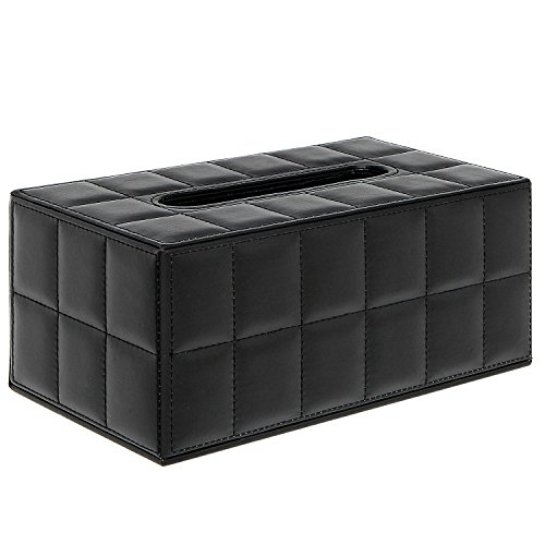 Black Modern Quilted Synthetic Leather Tissue Box Cover / Decorative Tabletop Napkin Dispenser - MyGift