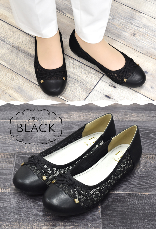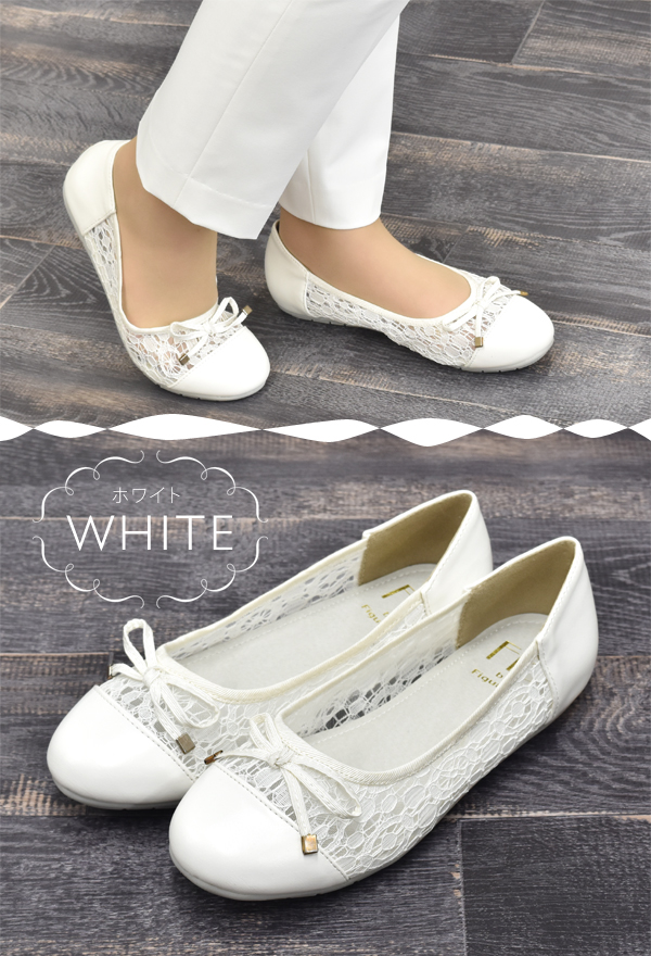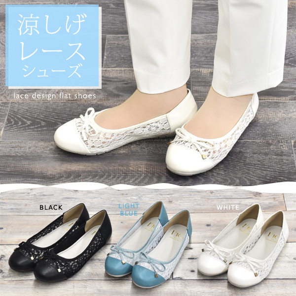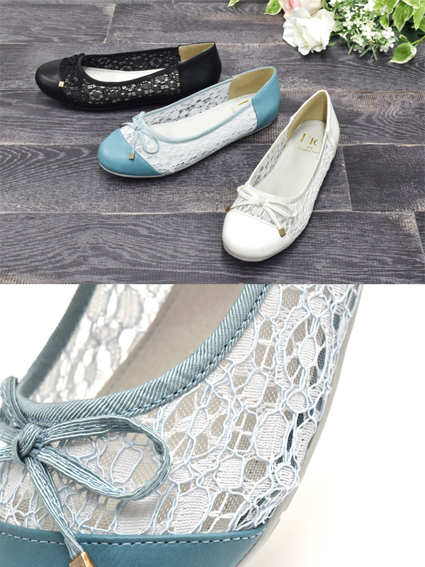 春夏にピッタリ チュールレース素材のレースフラットシューズ