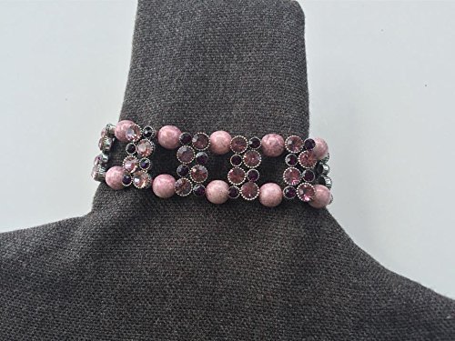 -. Title : 1 6" unique pink and purple stretch bracelet, thick bracelet