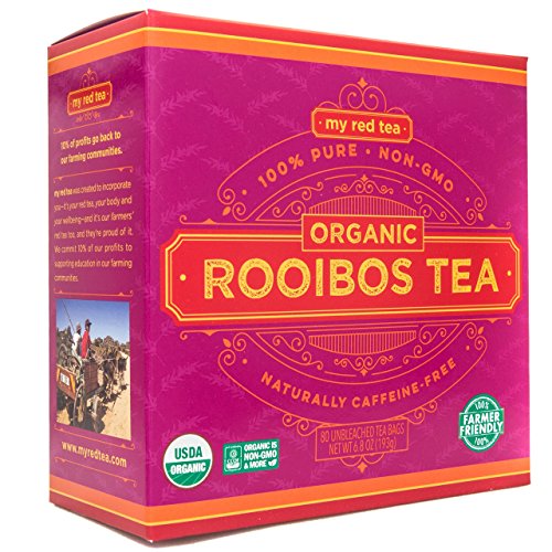 ROOIBOS TEA, USDA ORGANIC, MY RED TEA, South African, 100% Pure,Single Origin, Natural, Farmer Friendly, GMO-Free - 80 unbleached teabags sustainably...