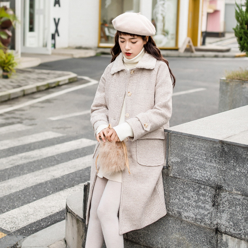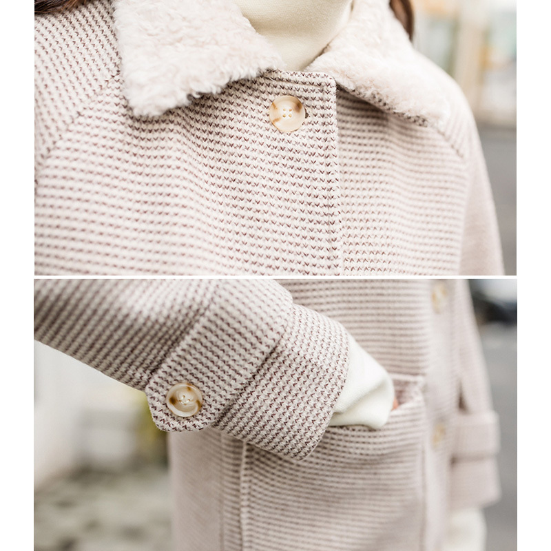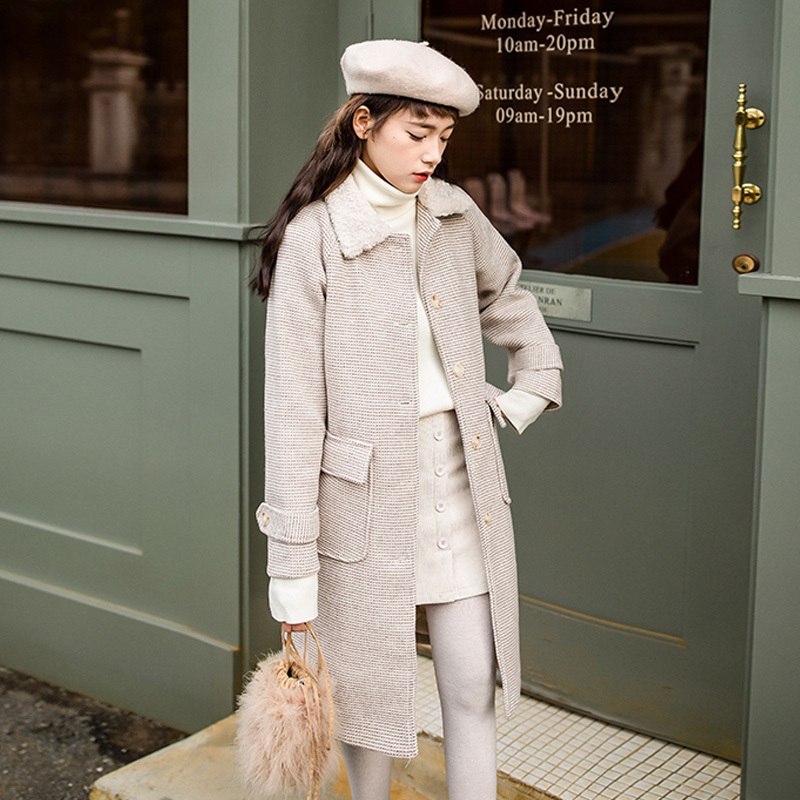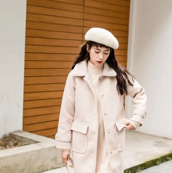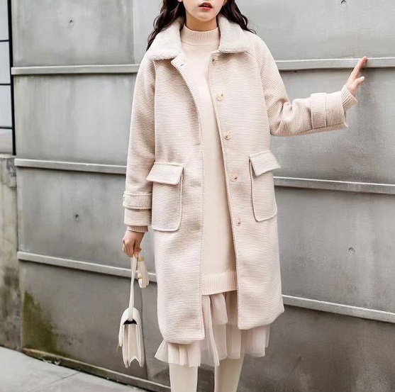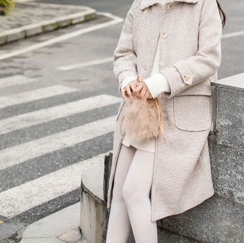 襟元にはトレンドボアをあしらい、全体のアクセントに。