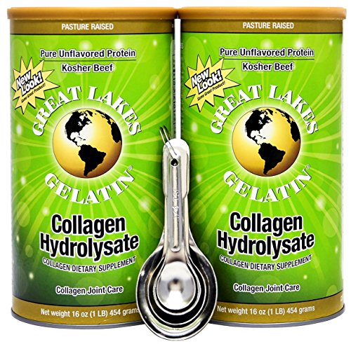 Great Lakes Gelatin, 2 Collagen Hydrolysate 16-Ounce Cans and Measuring Spoons Combo Pack