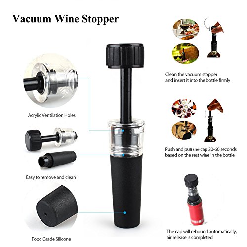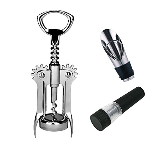 Studio : JOYBI Publisher : JOYBI Product Description Wing Corkscrew with 1 FREE 2-in-1 Wine Aerator Pourer 1 FREE Wine Vacuum Stopper, Bottle Opener Wine Preservation for Keep Red Wine Beer Champagne Fresh, Great for Wine Enthusiasts/Bartenders/Waiters, Stainless Steel Package Included:1 wine opener 1 wine aerator 1 wine vacuum stopper Features: This Wine Bottle Opener is constructed from zinc alloy body and stainless steel. It is great for opening Red Wine Beer Champagne bottle. Use this wine stopper,you will extend your wines life, lock in great taste and prevent any unnecessary spillage. Use the 2-in-1 wine aerator, you can pour wine with Spout, stop drop with the Stopper. The All-in-one wine bottle sealer and built in vacuum preserver Pump, Will remove virtually all the air from the wine bottle. Perfectly engineered silicone pump securely fit stoppers and completely seal your bottles. Great use for Restaurant, Bar or Home Opener use the use of leverage, it is very convenient. They are a must-have barware accessories for every wine drinker, connoisseur, hostess or host. 0