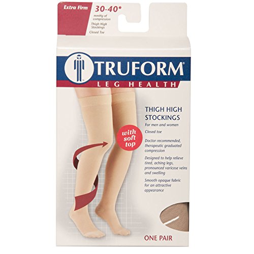 ReleaseDate : 2013-10-26 Studio : Truform Publisher : Truform Binding : Health and Beauty Product Description Designed to help relieve the more pronounced conditions associated with poor circulation. Graduated compression technology delivers a compressive action to the leg that is greatest at the ankle, then gradually decreases toward the heart. The amount of compression is expressed as mmHg (millimeters of mercury). The 30-40mmHg Extra Firm compression level is great for post surgery and severe edema, severe varicosities, venous ulcerations and insufficiency, hypotension, post thrombotic syndrome (PTS), and post sclerotherapy, just to name a few. Truform medical stockings feature classic styling and a smooth knit texture that helps conceal unsightly conditions. The closed toe offers a more natural stocking feel. Color options are basic neutrals for all-occasion wear. For men and women. Truform stockings, socks and pantyhose feature Graduated Compression Technology, which delivers a compressive action to the leg that is greatest at the ankle, then gradually decreases toward the heart. The amount of compression is expressed as mmHg (millimeters of mercury). Graduated compression provides two primary benefits to the legs: increased pressure on tissues beneath the skin helps reduce and prevent swelling for the wearer, and the compression action helps control the size (diameter) of the superficial veins that lie just beneath the skin, preventing the slowing of blood flow so it can flow more quickly up the leg back toward the heart. Truform graduated compression support hosiery helps maintain good circulation and leg health. Truform combines the best materials, the latest methods of semi-automated manufacturing, and "old-worlde" hand craftsmanship to produce a high-quality product at affordable prices. We take the extra time and effort necessary to insure a therapeutically effective, comfortable fit. The combination of state-of-the-art materials and equipment, plus knitting "know-how" sets Truform apart from the crowd to make your legs look and feel great! 0