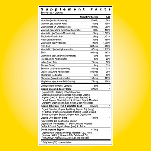 The first and only multivitamin to deliver science-based nutrient potencies, rich with organic super fruits, vegetables and targeted herbs with comprehensive whole body energy and liver support.*