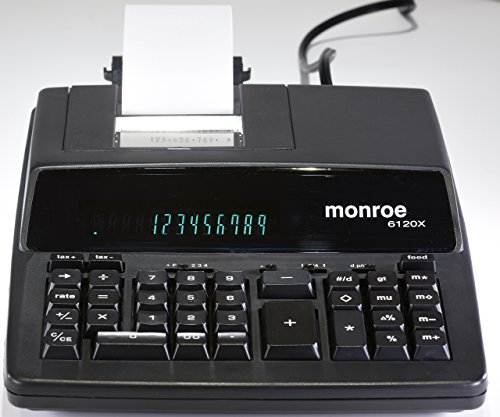 As the inventor of the commercial calculator in 1912, Monroe has earned the trust of fortune 500 companies, non-profit organizations and government agencies, including the likes of NASA. Monroe has since developed an entry level medium-duty calculator that will outlast and outperform competing models. The Monroe 6120x offers the best value in its category. With a 12-digit display and a print speed of 3.6 lines per second, the simple design and adding machine functionality make the 6120x perfect for small businesses, office, or home use. The Monroe 6120x places a wide array of productivity oriented features at your fingertips. This model contains a 4-key independent memory. Rounding may be set to standard, 5/4 rounding, round up, or truncate. Use the backspace key to correct entries, or the cost-sell margin feature to compute profit margins. The addition of extra-large plus and minus keys help make the Monroe 6120x a favorite among 10-key users. The 6120x may be used as a printing or display only calculator. Those who know, choose Monroe. - 12-digit print/display - 4-key independent memory - group, grand total, tax, tax + and tax -, n-count, mark-up, - - mark-down - percent, % +, % -, percent change - decimal settings: +,f, 0, 1, 2, 3, 4 - backspace and error correct features - black & red print with print speed of 3.6 lines per second - perfect for small businesses, office, or home use. Includes: - Monroe 6120x printing calculator, paper roll, and ribbon spool. Paper: 2 1/4" single ply paper tape ribbon: p65m (twin spools) or the Monroe m33x ribbon cartridge. Calculators being substituted for the Monroe 6120x line: canon: mp11dx, p23-dhv, mp25dv, mp21dx, p170dh Casio: fr-2650tm, dr-210tm Innovare: 16000 sharp: EL2192RII, EL2196BL victor: 1220-4 two-color, 1228-2 two-color, 1297 two-color, 1230-4 fluorescent.Feature