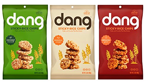 Dang Sticky-Rice Chips 3 Flavor Variety Bundle, (1) Each: Coconut Crunch, Original, and Sriracha Spice, 3.5 Ounces