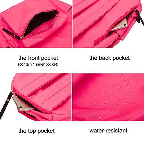 Multi Compartments:a total of 9 pockets,1 laptop compartment pocket and 2 open inner pockets,2 side pockets,1 top zipper pocket,1 back zipper pocket.1 front zipper compartment have 1 open inner pockets.