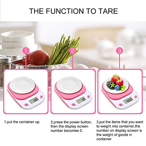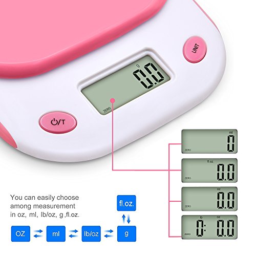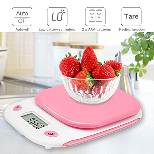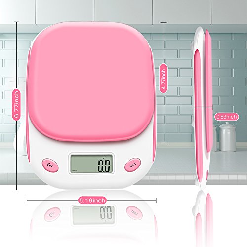Bodyguard Digital Kitchen Scale,High-precision Multifunctional Pocket Food Scale ,11lb/5kg ,with Large HD back-light LCD Display (Batteries Included)-Pink
