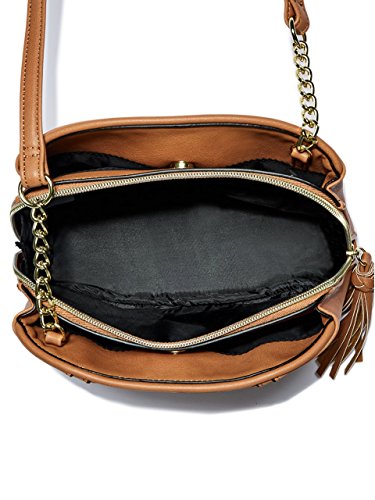 Product Description Whipstitch details decorate the front of this crossbody bag, crafted from a lightly textured faux leather. Long strap with chain finish. Multiple compartments for the organized girl. 0