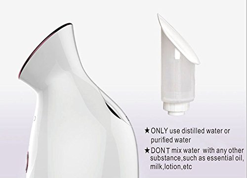 -. Feature : Advanced Nano-atomization Technology: Compared to normal steam, this powerful spa home Nano ionic steam can more easily penetrate the skin barrier. Generates hot steam in seconds, easily absorbed through skin, and moisturize skin more quickly. / Opens and unclogs your pores allows you to remove dirt, oil and grime from your skin; Melts away dead skin cells, replace chemical exfoliating scrubs & peels; Make toner, cream and other nutrients absorbable. / Run as Interior Humidifier in Any Weather. Besides skin care, this beauty instrument mist sprayer can also be used for interior humidifier in a powerful and efficient way, also can relieve cold & sinus problems. / UV light inside the facial sauna system skin steamer machine which kills any bacteria so that it reaches your skin in its purest, most effective condition. / Automatic low water and overheat shutoff. Light weight and easy to use. 100% MONEY BACK GUARANTEE.