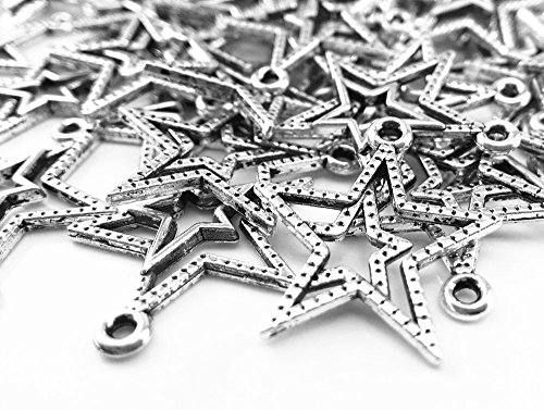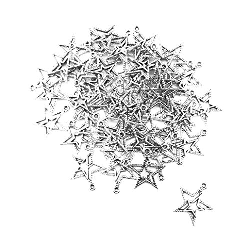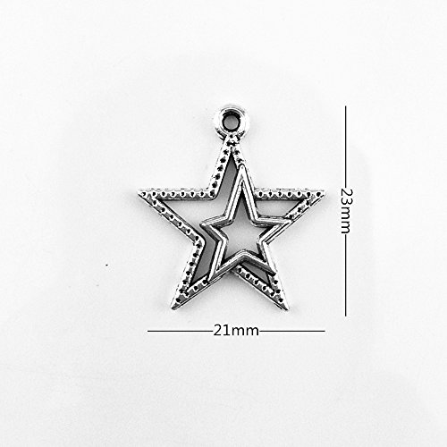 Yueton 50pcs Vintage Double Star Sign Metal Charms Beads Pandent Jewelry Making Accessory (Silver)