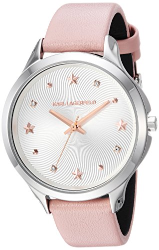 Karl Lagerfeld Women's Karoline Quartz Stainless Steel and Leather Casual Watch, Color Silver-Tone, Pink (Model: KL3012)