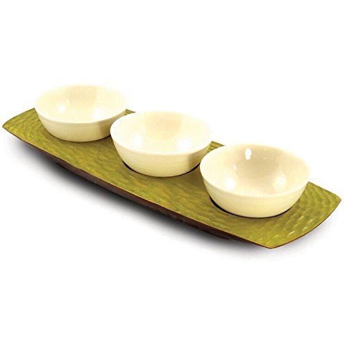 Enrico 3150MH4080 Mango Wood Honeycomb 3-Bowl Server, Avocado