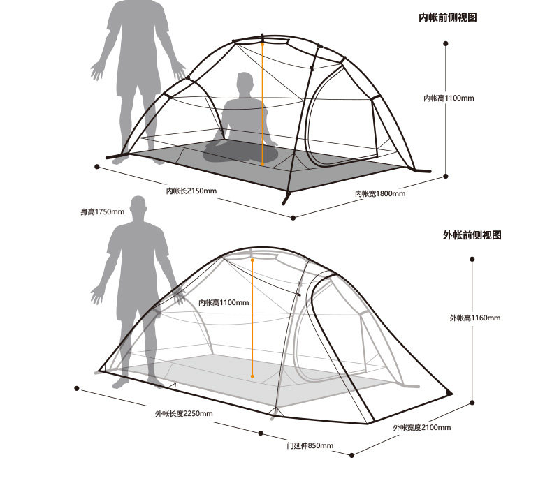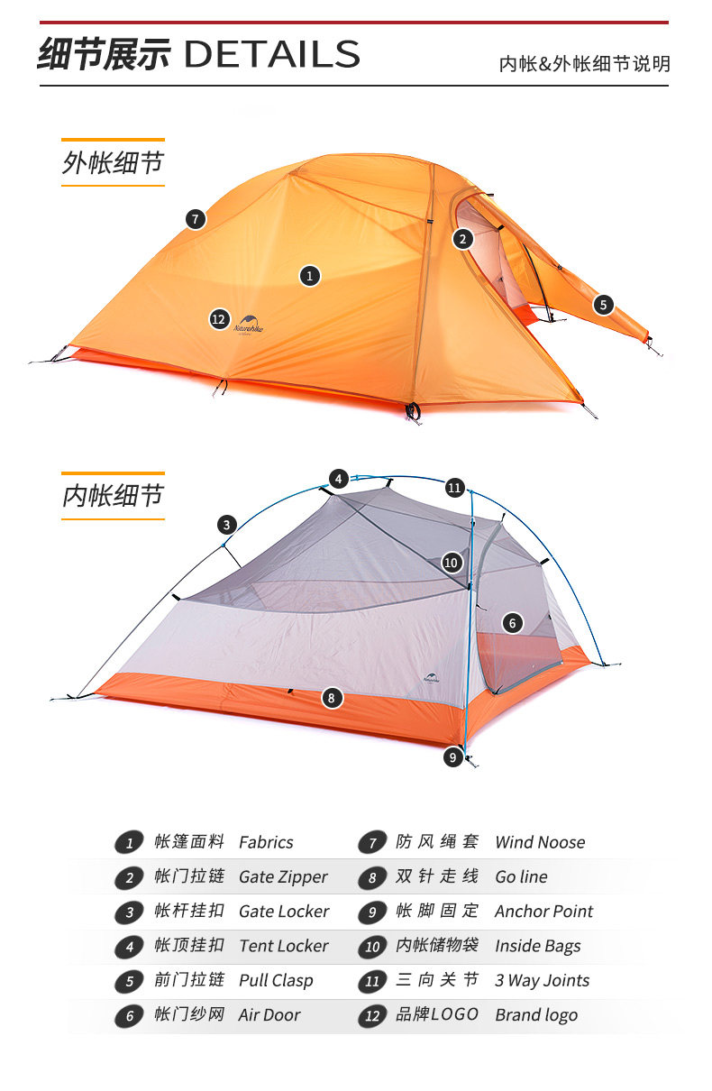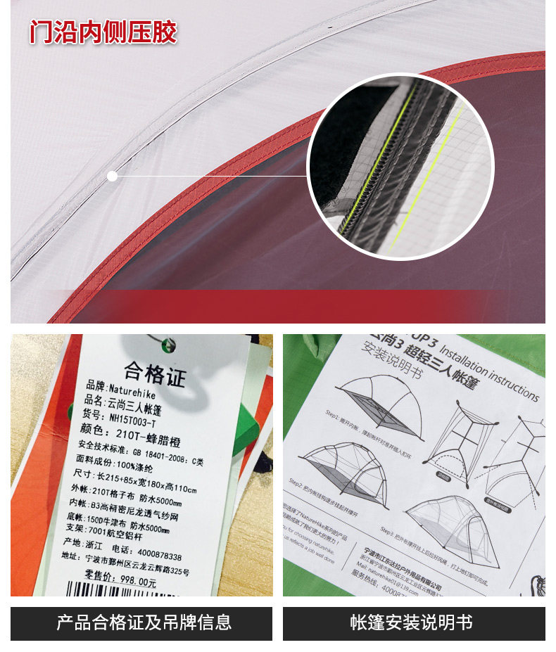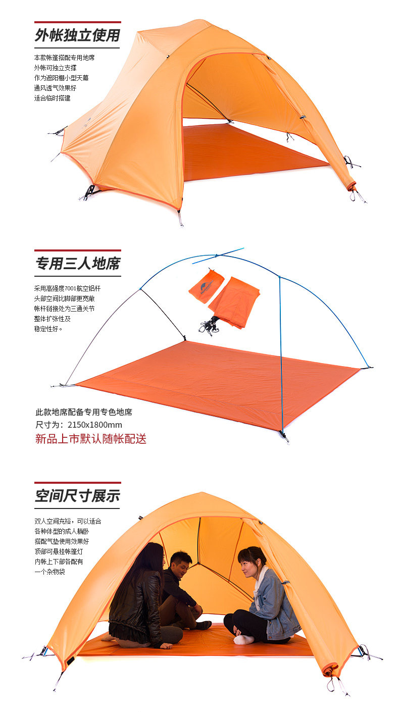 󰄬NH云尚超轻3人帐篷户外三人防雨登山四季野外露营双层防暴雨
