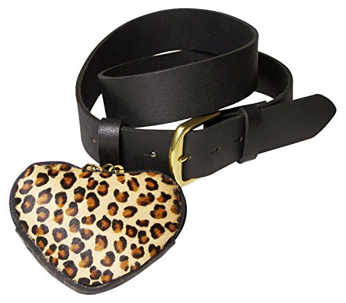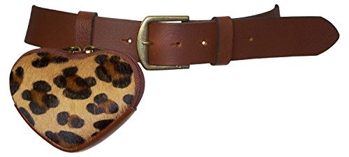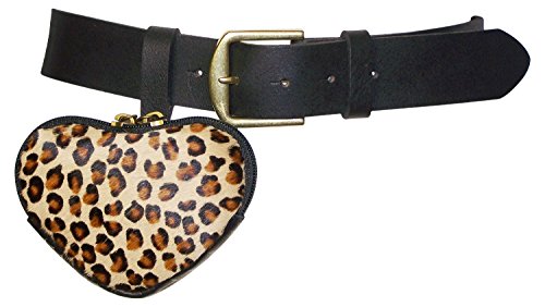 This chic, feminine belt impresses with its small pony hair purse. The genuine fur (cowhide) comes in a leopard pattern. The heart-shaped purse opens with a zipper and can hold your lipstick, keys and money. The purse can be detached from the belt and worn on other belts or accessories. The belt strap is made of buffalo leather and is finished with a brass-tone, side-bar buckle. The leopard pattern on the purse can be small or large scale.? Belt width approx. 1.6' (4?cm) Small purse: width approx. 4.7 inches/ 12 cm, height approx. 4.7 inches/ 12 cm - Shipping takes 3-6 days in Europe and generally not more than 8-10 days to non-European countries.