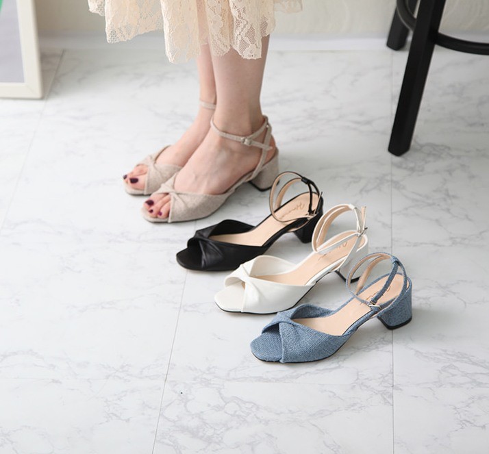 商品名:サンダル レディース 太ヒール チャンキーヒール アンクルストラップ 2018 夏 ファッション 靴 婦人靴
