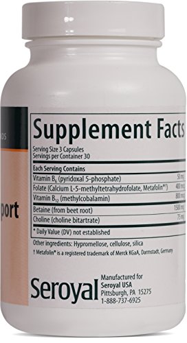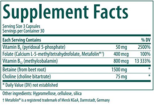 Supports healthy homocysteine levels. Helps to promote vitamin B12 intake. Provides 1500 mg of betaine and 75 mg of choline per day. Includes 50 mg of vitamin B6, 800 mcg of vitamin B12 and 400 mcg of folate (from Metafolin®) per day. Methylation Support provides a combination of betaine, choline, and B vitamins in their physiologically active form to help support homocysteine metabolism. Homocysteine is an amino acid that can be further metabolized into methionine or cysteine, and normal homocysteine levels are necessary for the methylation of nucleic acids, proteins and lipids, as well as protein production. Methylation Support is ideal for vegans, who tend to consume low levels of vitamin B12.Feature
