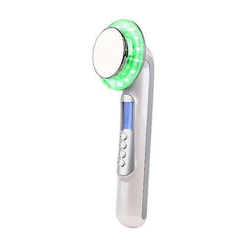 -. Feature : Please apply your own toner and serum on face before using the device. The ideal serum should be in liquid form such as Vitamin C serum, hyaluronic acid, moisturizing essence etc. You may want to re-apply during the treatment. / RED Light is one of the most powerful colors to increase blood circulation. Stimulate skin cells to excrete collagen to achieve firm and smooth texture. BLUE Light has excellent effect of curing acne and kill bacteria. It can adjust skin sebum secretion and effectively get rid of acne. GREEN Light is used for anti-aging, smoothing wrinkle and fine lines, curing wounds purpose. / If you want to turn on the LED lights, choose the PHOTON mode, then press SHIFT to switch among red/blue/green lights. The light will not light up until you press "Shift" button. / The device also has a massage function which works in 2 modes: Intense vibration in continual progress or in discontinuous progress. / FDA listed. Not for people with artificial pacemaker, osteoporosis, skin diseases or pregnancy.