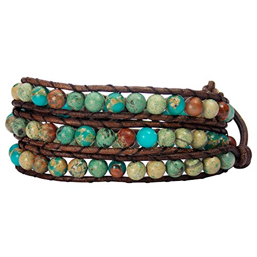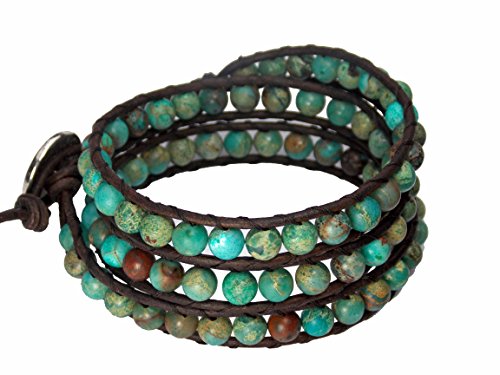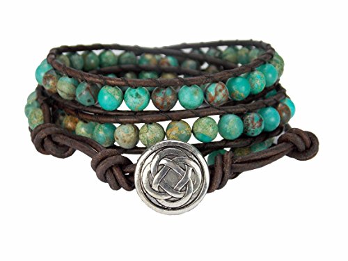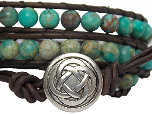 -. Binding : Jewelry -. Brand : Carolyn Jane's Jewelry -. Color : Red -. Department : womens -. Feature : This Irish Celtic knot circle wrap for women is handcrafted with beautiful natural jasper beads sewn onto rustic antiqued chocolate strands of leather. And features antiqued celtic button. / Choose from goldish bronze button or silver plated button. Comes in a gift bag or box. / Wraps 3 times 24" inches in length ( small to medium wrist) / The mesmerizing swirl of repetitive patterns twisting and turning like waves and ropes capture the sacred look of Celtic jewelry. After thousands of years, Celtic jewelry is still popular in today's world as a symbol of marriage, family, friendship and spirituality. / This Celtic knot is perfectly paired with unique turquoise jasper beads. Jasper reminds us to celebrate life and to realize that it is not too late to 'live a little'. It brings calm to difficult situations and to encourage us to relax and enjoy life. -. Label : Carolyn Jane's Jewelry -. Manufacturer : Carolyn Jane's Jewelry -. Model : CKBTUR-001 -. MPN : CKBTUR-001 -. PartNumber : CKBTUR-001 -. ProductGroup : Jewelry -. ProductTypeName : FASHIONNECKLACEBRACELETANKLET -. Publisher : Carolyn Jane's Jewelry -. Size : small medium -. Studio : Carolyn Jane's Jewelry -. Title : Celtic Knot Bracelet Leather Turquoise-Jasper Beaded Wrap