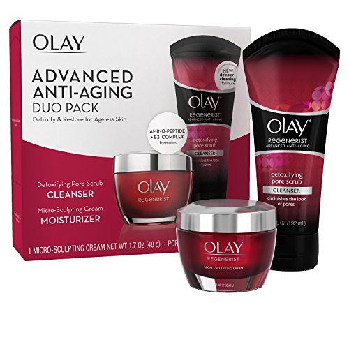 -. Feature : Detoxify and restore for ageless skin with Olay advanced anti-aging Regenerist skin care duo pack / Enjoy award winning Regenerist micro sculpting face moisturizer, visible wrinkle results start day 1 / This luxurious-feeling face cream is infused with hyaluronic acid, amino-peptide complex ii and Niacinamide (vitamin b3) / Deep clean and detoxify to reveal bright, smooth skin with Regenerist detoxifying pore scrub cleanser