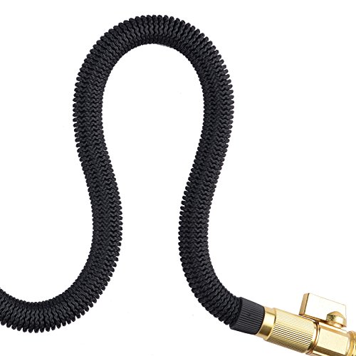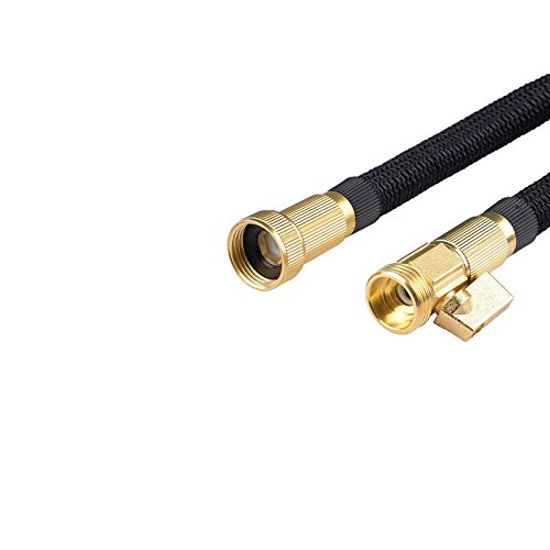 VOLFO 75 Feet Expanding Garden Hose, Solid Brass Ends, Shut Off Valve, Natural Latex Core, 5000 Denier High Tenacity Woven Wrap, Black