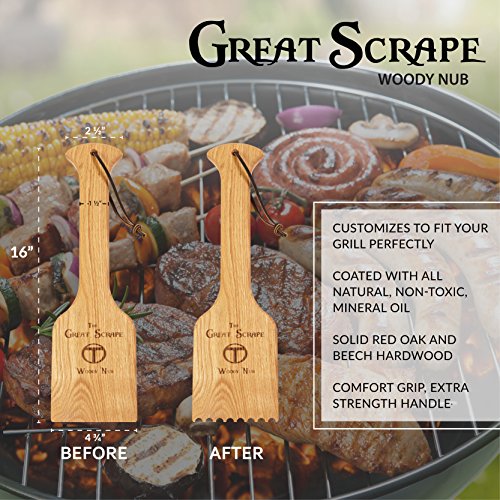 - PERFECT FOR GIFTING - The Great Scrape’s real wood grill scraper is perfect for the BBQ and smoke masters in your life. Even novice grillers will appreciate the sturdy, easy to use Woody Paddle for keeping their BBQ grills clean. No matter their experience level, they will keep it in their grill toolkit for many grilling seasons to come, because this scraper makes grill cleaning a breeze.