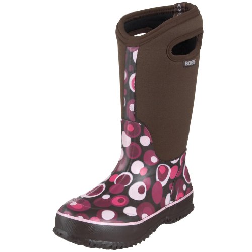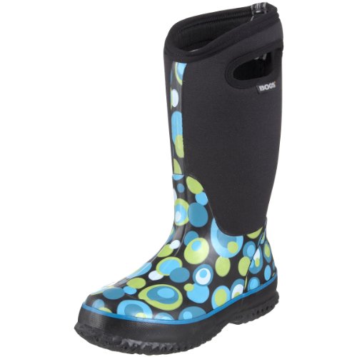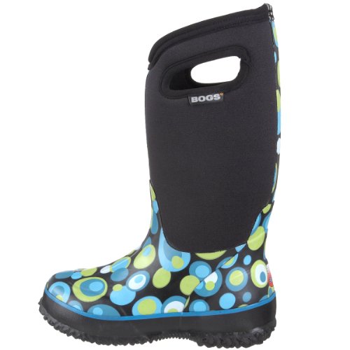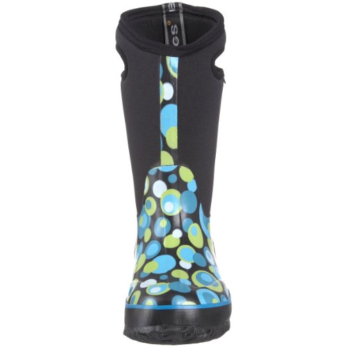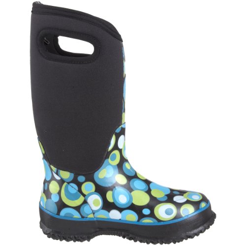 As comfy and convenient as a pair of wear-everyday house slippers, the Bogs Classic High Bubbles Kid's is also tough enough for playtime! This kid's boot is a four way stretch inner bootie with hand laid layers of waterproof natural rubber that provides a perfect fit that doesn't need breaking in and also stays warm down to cold temperatures. A perforated sockliner provides shock absorption and helps move vapor away from the foot to avoid overheating in fair weather. This Bogs boot has a non-slip sole that ensures safety and also kicks away dirt for always dependable traction. Have fun in any weather with the Bogs Classic High Bubbles Kid's!Feature