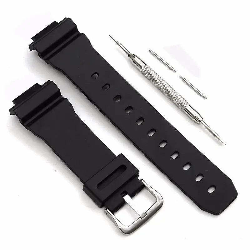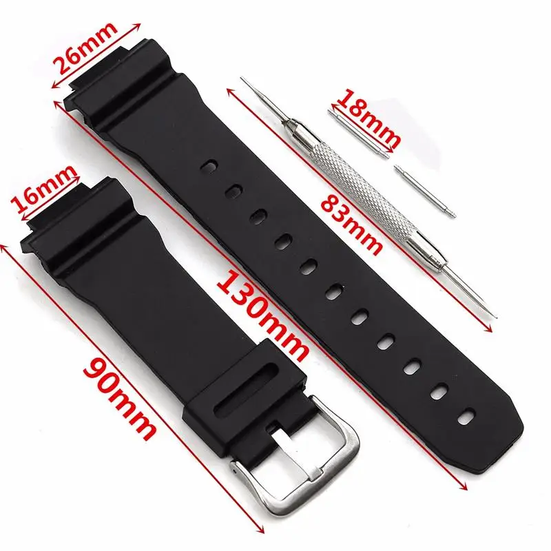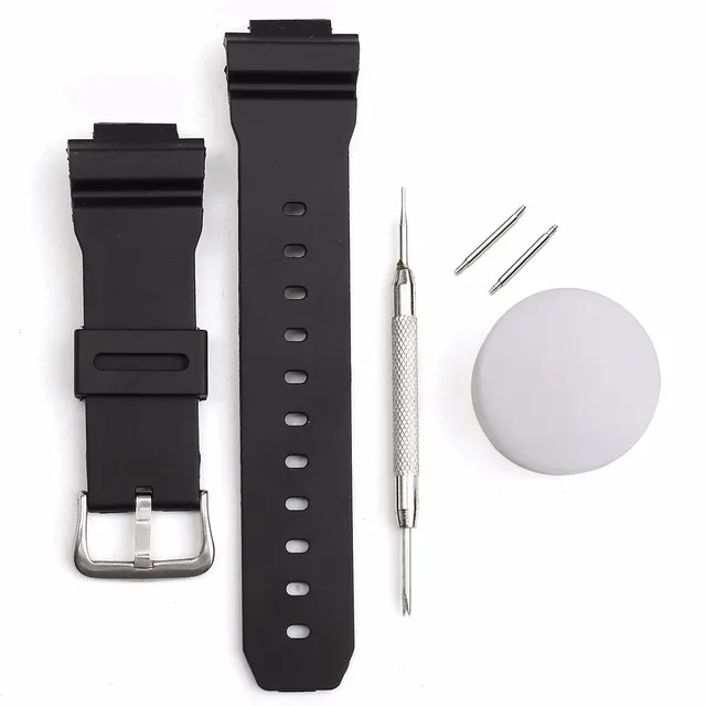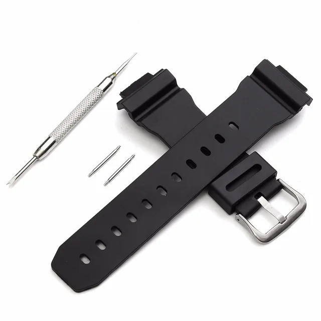| [해외] 고무 손목 스트랩 스포츠 다이빙 16 미리메터 남성 실리콘 팔찌 실버 스테인레스 스틸 금속 바늘 버클 교체/casio |
