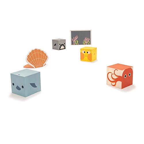 Puffer Fish. Dolphin. Octopus. Shark. Your favorite underwater creatures, squared. Made from sustainable Midwestern basswood. You'll also find four paper environments. Eco-friendly fun. Mix, match, splash.Feature