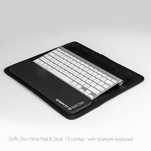 Grifiti Platform Slim Wrist Pad 12 Combines Deck 13 Lap Desk and Keyboard Platform with Slim Pad 12 Wrist Rest for Apple® Wireless Keyboard, MacBook Airs, and Logitech® Portable Keyboards. Two great products together: Deck 13 lap desk and keyboard platform and the Slim Pad 12 wrist rest for Apple's ultra-thin iMac, Mac Mini Wireless Keyboard, MacBook Airs, and Logitech's small keyboards