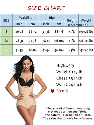 -. Binding : Apparel -. Brand : LAZAWG -. Department : womens -. Feature : Material:73% nylon + 27% spandex.Comfortable fabric for all-day wear.Please Check Our SIZE CHART on the left Size PICTURES.Choose the Size Based on Your Own. / No zipper and No hooks around the bodysuit,so it will not shows through the clothes or dress and achieve real seamless and invisible. / Shoulder straps are not adjustable.Wide straps for comfort and assurance and would not hurt your shoulders; material is thin and flexible,outline your perfect body lines.Ultrathin style is a great choice for summer day£¡ / Open bust design allowing you to choose the bra shapewear what you love, show and shape your perfect natural curve.Tight design provides maximized firm control to shape and control your abdomen and waist. / The thong type gives you a panty line-free silhouettefor a truly custom fit and seamless under clothes.Everyday control helps to smooth body and shapes your figure in a flattering way. -. Model : 3728LAZAWG -. ProductGroup : Apparel -. ProductTypeName : UNDERWEAR -. Title : LAZAWG Women Full Body Shapewear Briefer Seamless Control Tummy Slimmer Bodysuit