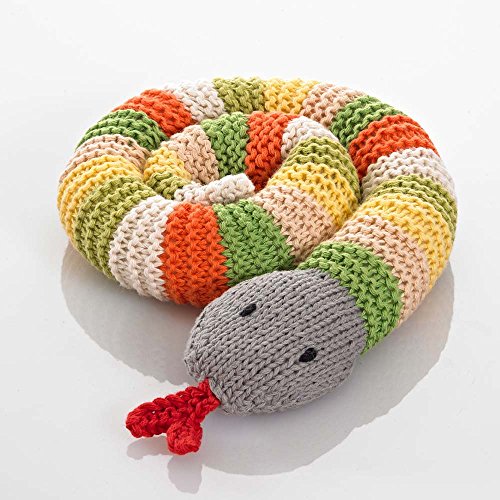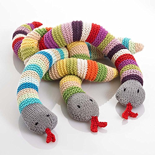 When Pebble started there was never any question that they would make a range of snakes at some point. What is it about children, that they all love snakes. In fact when they were brainstorming with friends for a name for Pebble back in the early days, there were many who thought that the new brand should be called snakes, so convinced were they of the love of children for these slippery reptiles. The ones Pebble makes are not slippery, in fact they're rather cuddly. They make them in a hand knit garter stitch, which is where every row is knitted and although more time-consuming than a regular stocking stitch it gives such a lovely soft finish that we thought it would be perfect for these little friends. All Pebble products are made in Bangladesh by the extremely talented and capable artisans at Hathay Bunano ps. We love their workmanship and we love rural Bangladesh. Pebble toys are our small contribution to supporting families in rural Bangladesh, to removing the need for economic migration to the cities and to providing women with flexible working opportunities which are close to their homes. All Pebble toys are 100% cotton with 100% polyester fill. About 13cm. They are all machine washable and can be tumble dried on a low setting.Feature