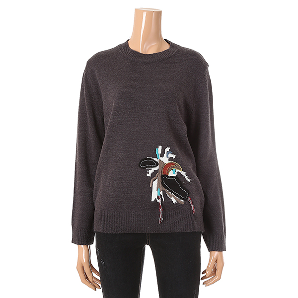 앞면에 자수로 디자인 되어 있는 멋스러운 니트티셔츠입니다