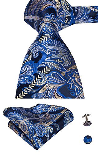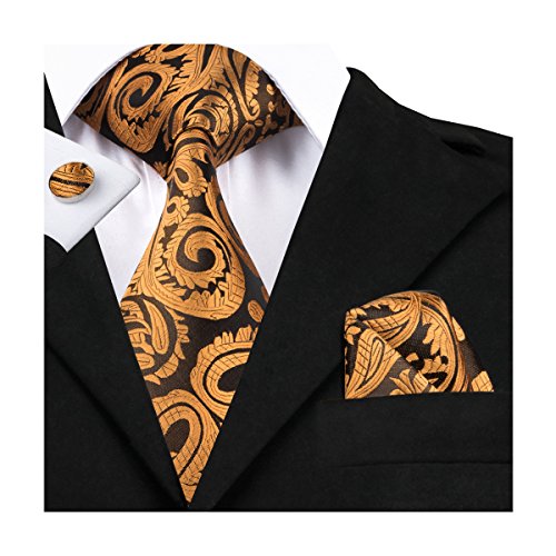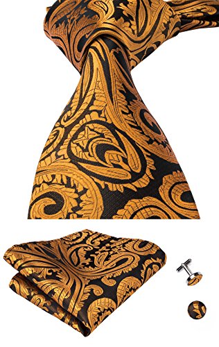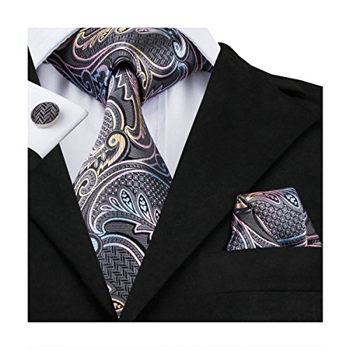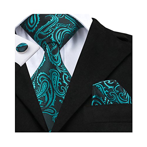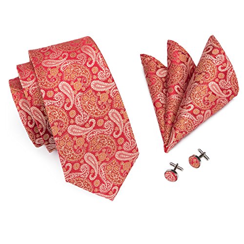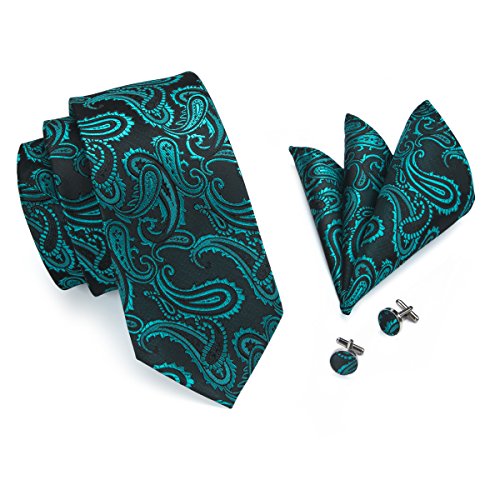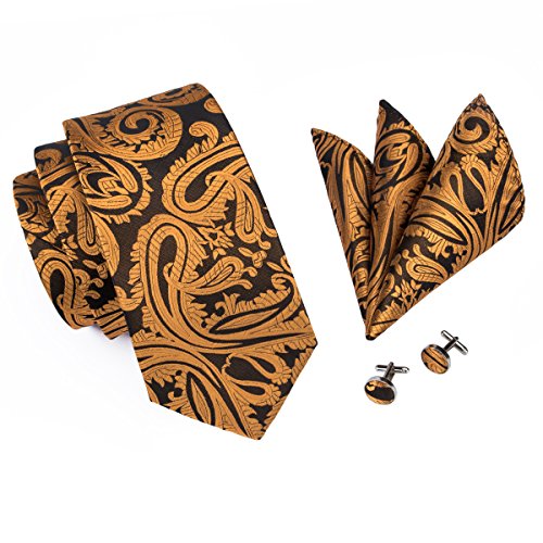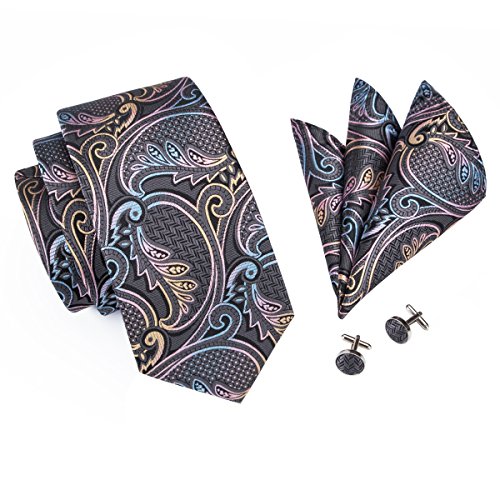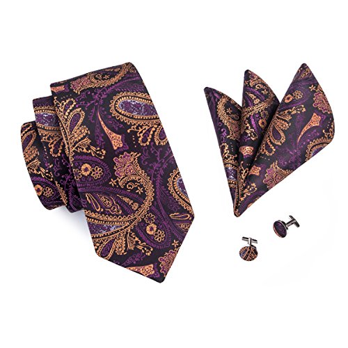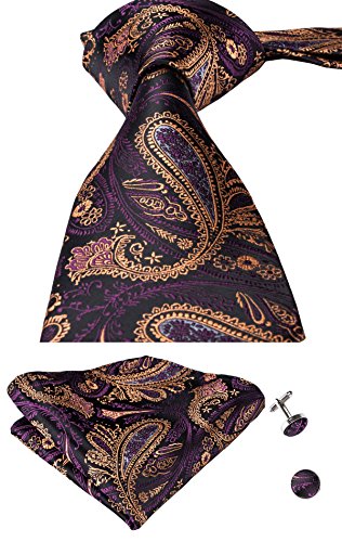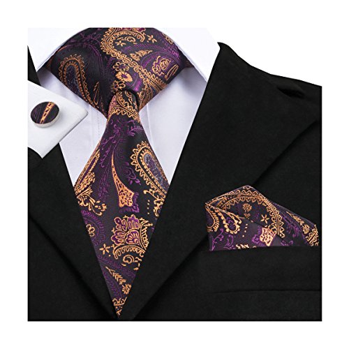 Hi-Tie hi-tie Paisley Krawatte Taschentuch Manschettenknopfe Set Jacquard Gewebte Seide Krawatte