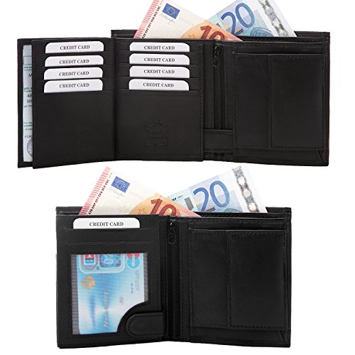 Praktische schwarze Ledergeldborse aus echtem Rind-Leder in Hochformat