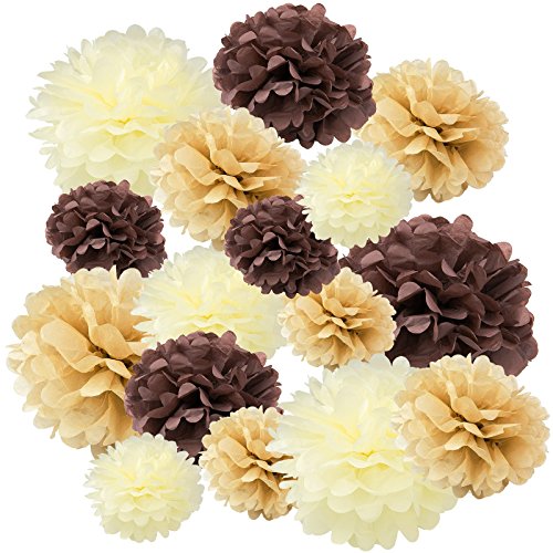 Floral Reef Variety Set of 16 (Assorted Soft Brown Color Pack) consisting of 8" 10" 14" Tissue Paper Pom Poms Flower