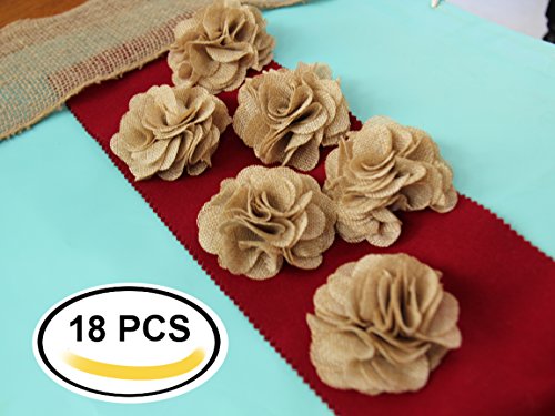 3" Burlap Rustic Flowers Rose (18 Pcs) Chic,Wedding Decor,Craft Country,Natural!