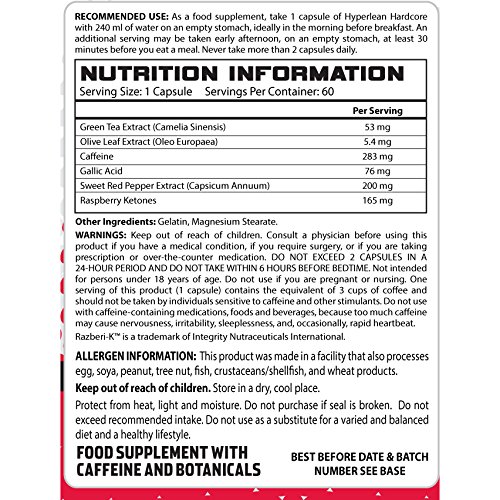 -. Title : HyperLean Hardcore - Advanced Thermogenic Fat Burner, Green Tea Extract, Raspberry Ketones, 60 Caps