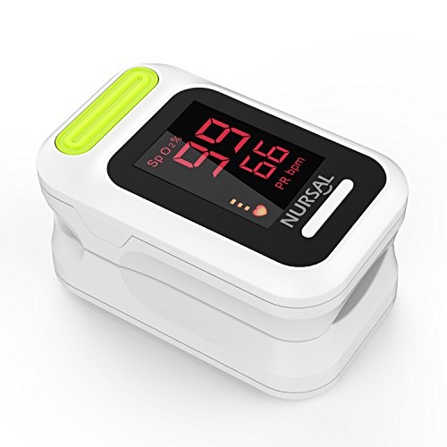 -. Feature : ACCURATE AND RELIABLE - Accurately determine your SpO2 (blood oxygen saturation levels) and pulse rate in 10 seconds, displayed conveniently on a large digital LED display. / SPORT/HEALTH ENTHUSIASTS - The Nursal OXIMETER pulse monitor is suitable for sports enthusiasts like mountain climbers, skiers, bikers, runners or anyone interested in measuring their normal oxygen level and pulse rate. / FDA APPROVED - Designed and tested to exceed FDA and CE standards for Pulse Oximeters used by Health Care Professionals. / EASY TO USE - Simple operating instructions; one-button touch settings; low-battery indicator. Recommended use for all ages from children to adults. / PORTABLE AND GUARANTEED - The free nylon carry case and neck lanyard make it easily portable, and it comes with a full two-year warranty backed up by our customer service support team (Requires 2 AAA 1.5V batteries - NOT included).