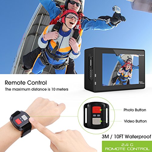 2.4G Wireless Wrist Remote Control: With Remote Control you can easily control your DBPOWER camera, framing shots or recording video. No Need to look your Sports Camera to start and stop recordings or snap photos for your immersive footage and your world.