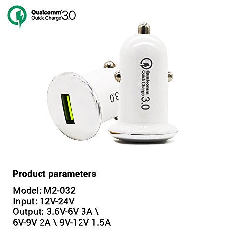 -. Title : Car Charger Quick Charge 3.0 Fast Single USB Smart Port, Qualcomm Power Car Charge Adapter for Apple and Android Devices, 3A/12V-24V, White - 1pcs