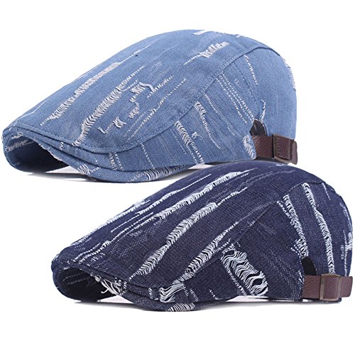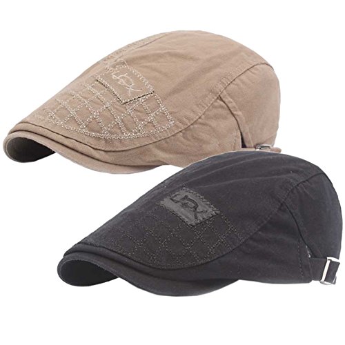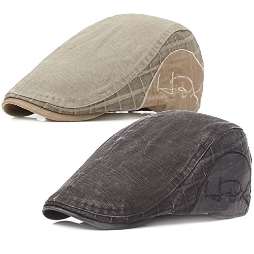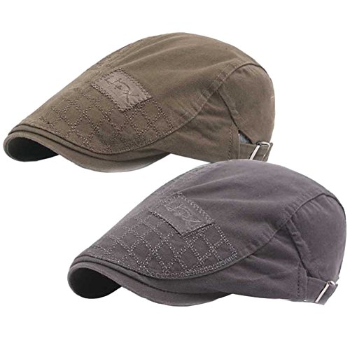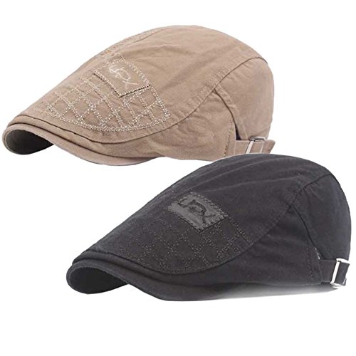 | 2 Pack Men's Cotton Flat Cap Ivy Gatsby Newsboy Cabbie Caps Hunting Hat |