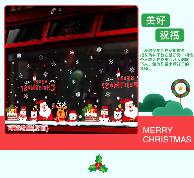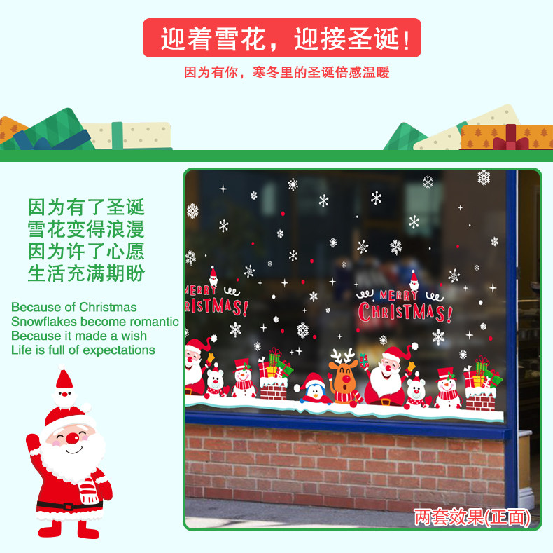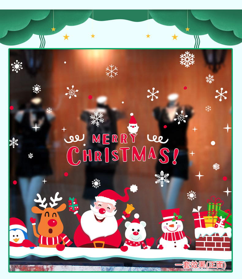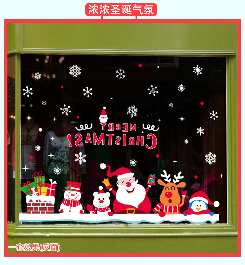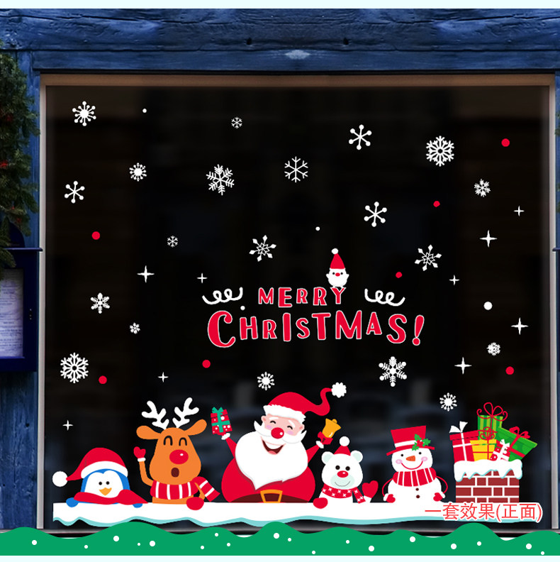 圣诞节装饰品开业布置店面场景玻璃橱窗贴画墙贴卡通圣诞屋顶烟囱