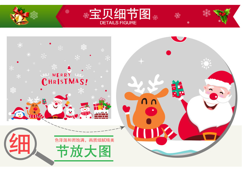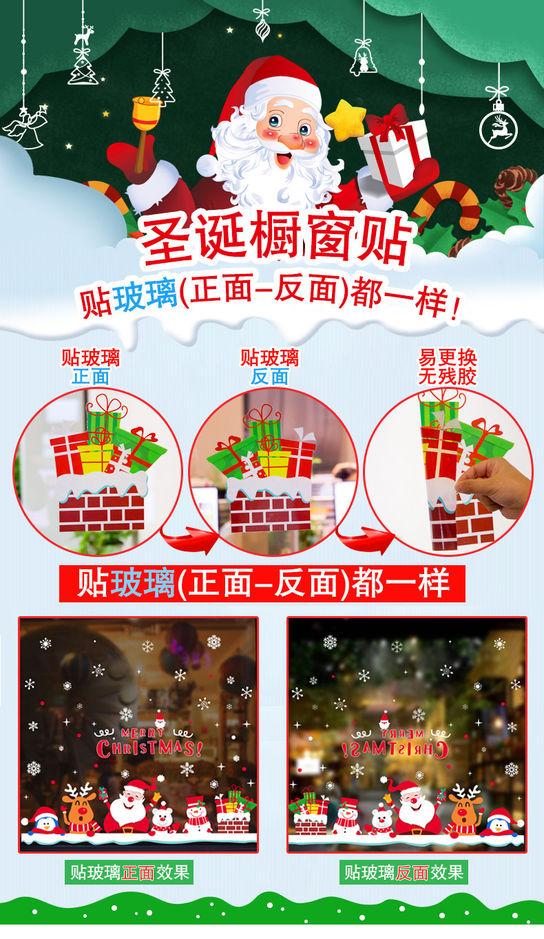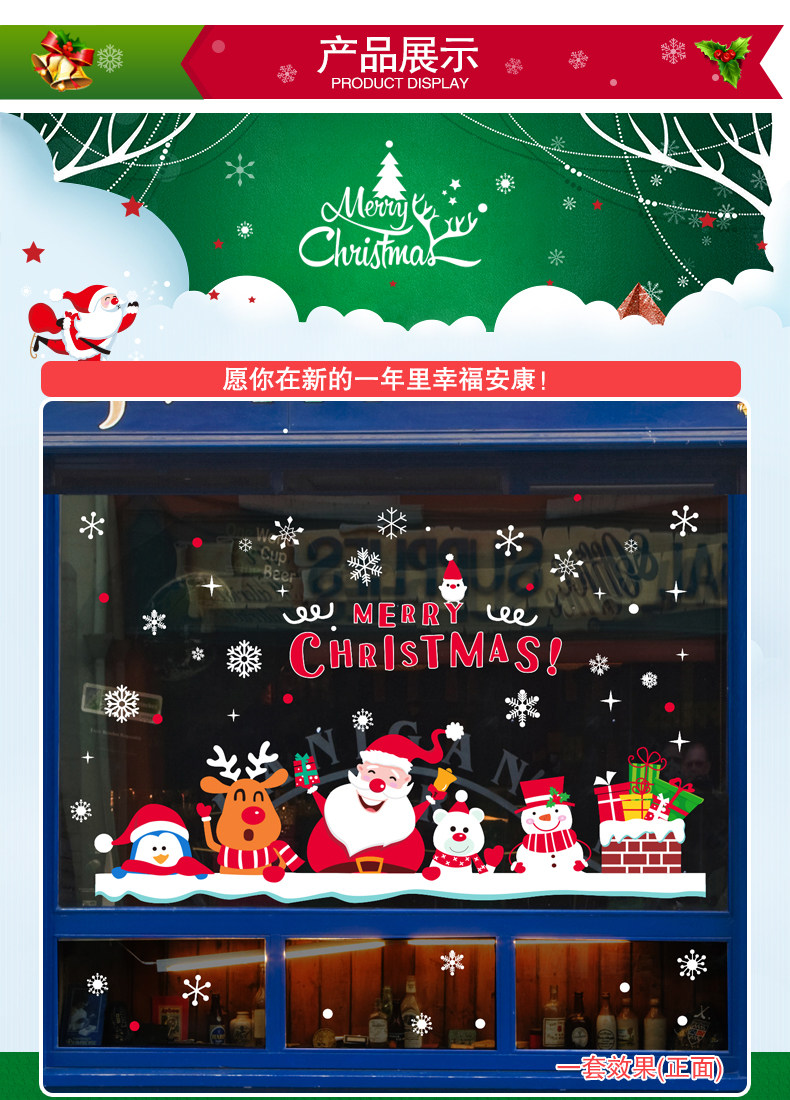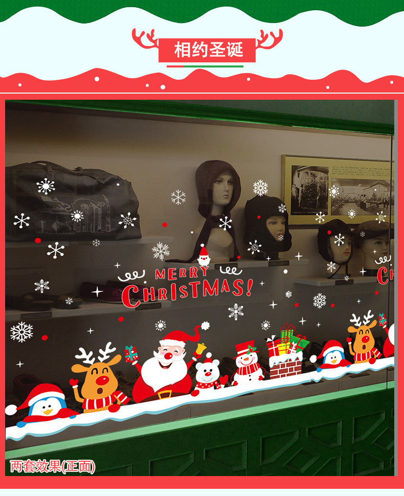 圣诞节装饰品开业布置店面场景玻璃橱窗贴画墙贴卡通圣诞屋顶烟囱
